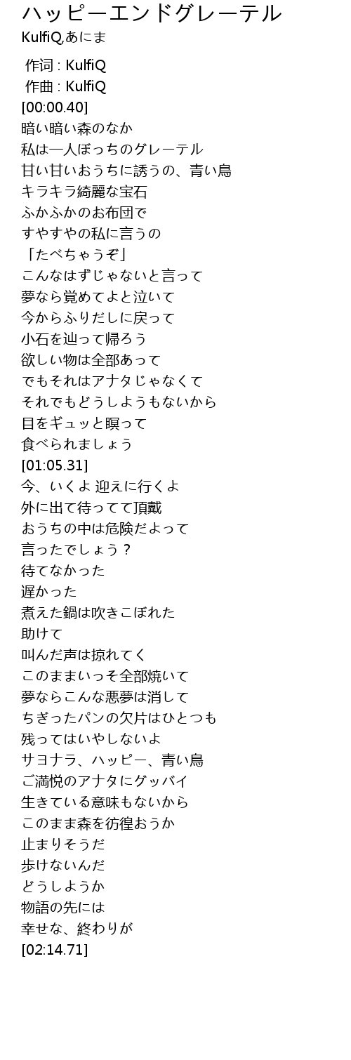 | [01:43.49] | サヨナラ、ハッピー、青い鳥 |