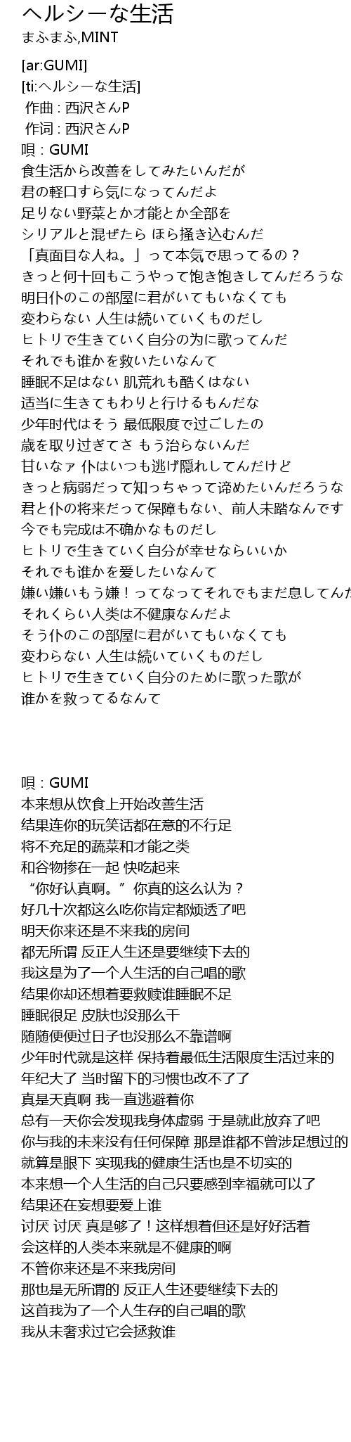 | [00:06.45] | 唄:GUMI |