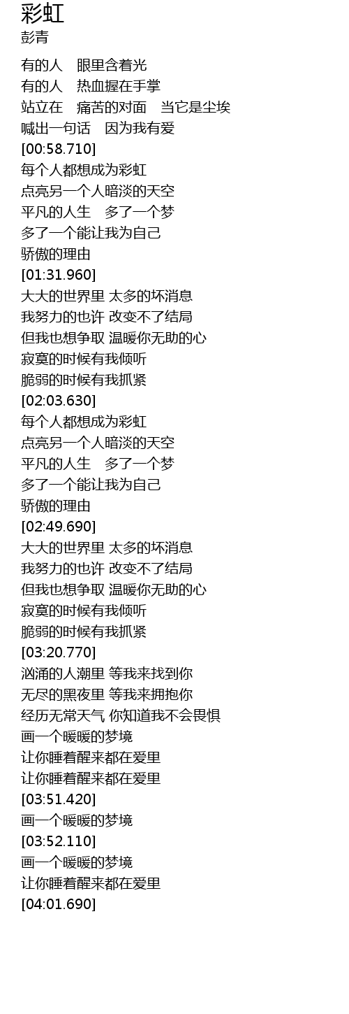 | [02:33.870] | ping fan de ren sheng duo le yi ge meng |