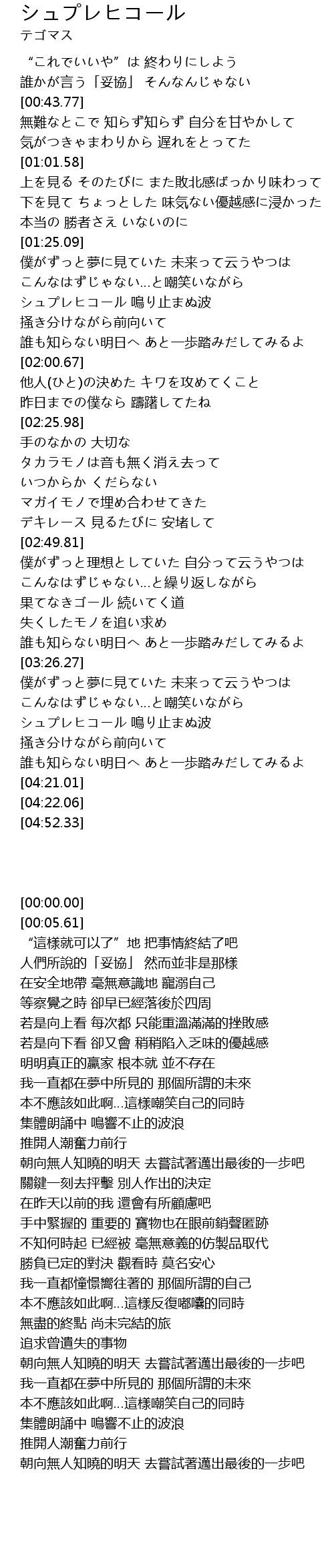| [01:41.82] | シュプレヒコール 鳴り止まぬ波 |