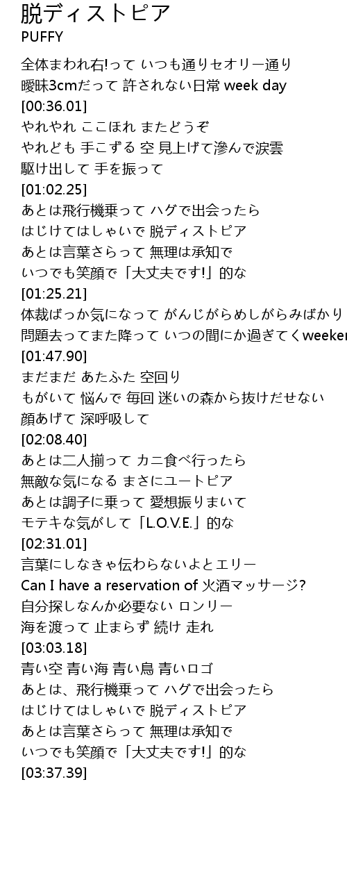 | [03:20.69] | はじけてはしゃいで 脱ディストピア |