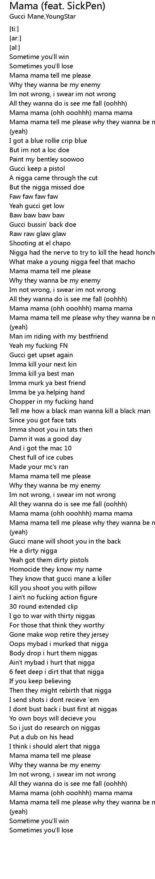 Mama mama tell me please why they wanna be my enemy |