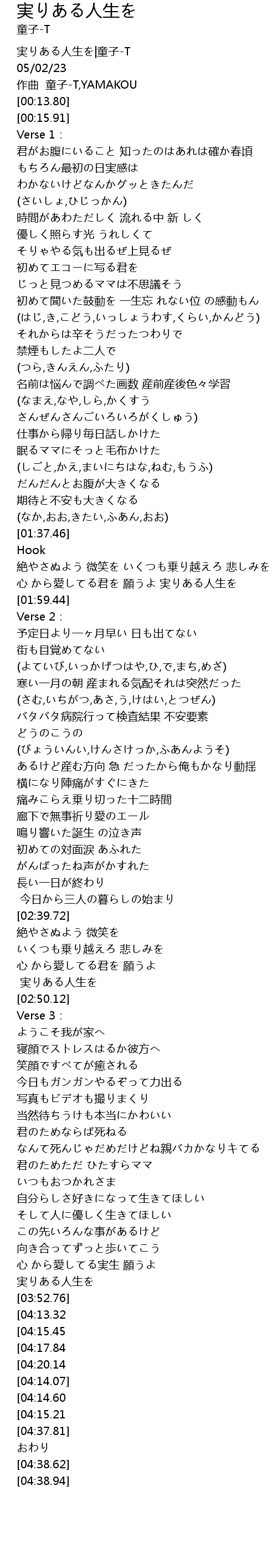 | [04:30.97][04:20.14][04:10.06][03:59.64] | 願うよ 実りある人生を |