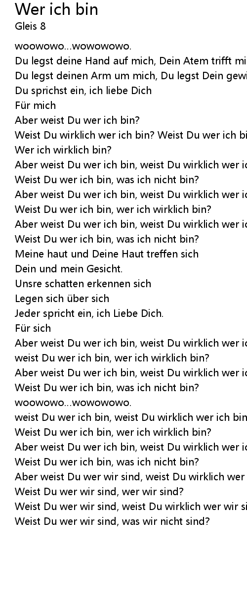 | weist Du wer ich bin, weist Du wirklich wer ich bin? | |