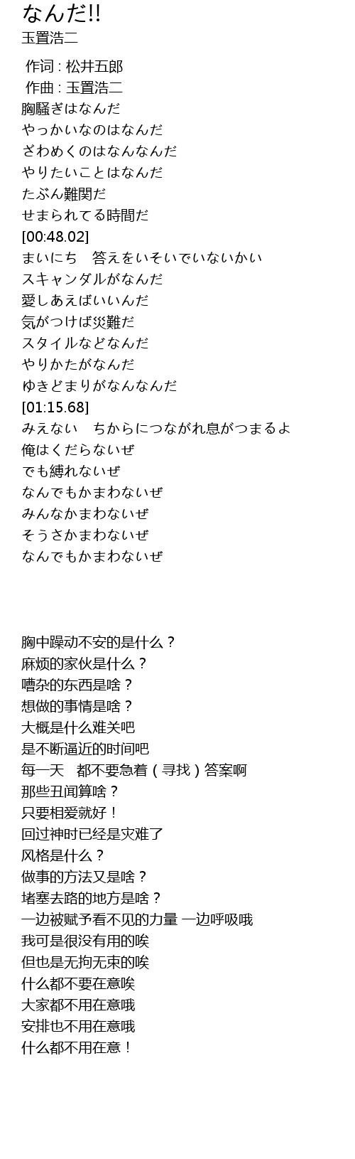 | [00:01.000] | 作曲 : 玉置浩二 |