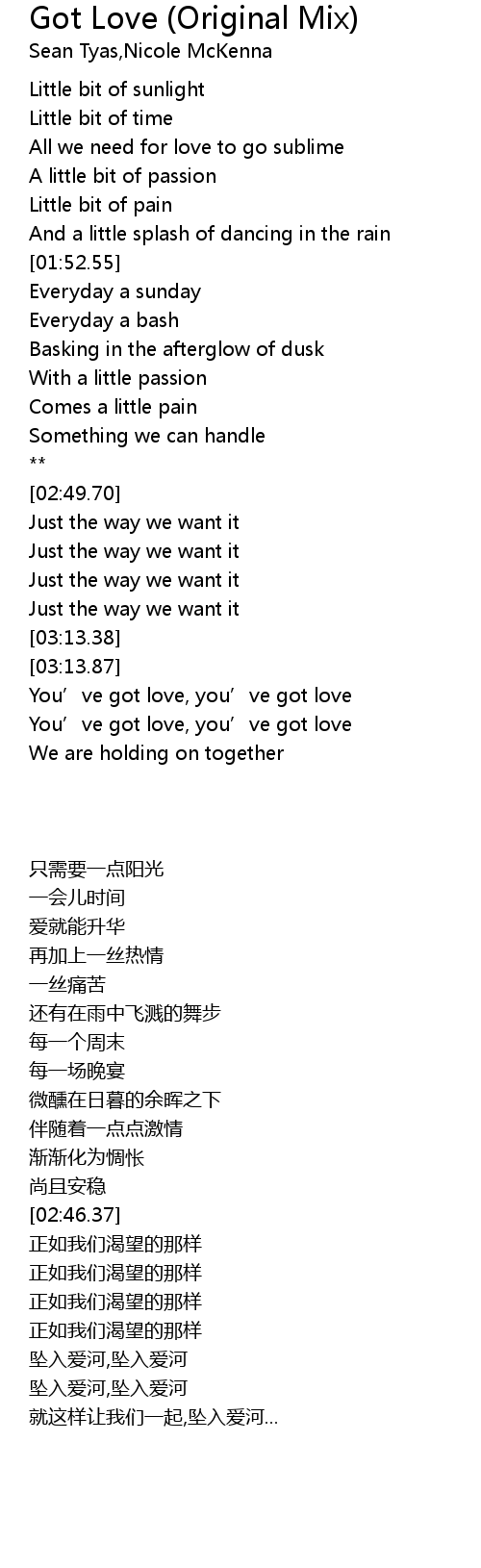 | [03:26.69] | You’ve got love, you’ve got love |