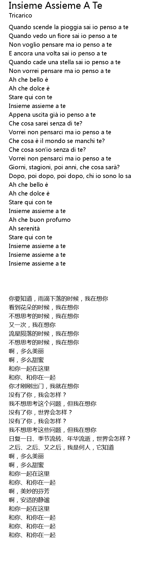 | [00:46.17] | Non vorrei pensare ma io penso a te |