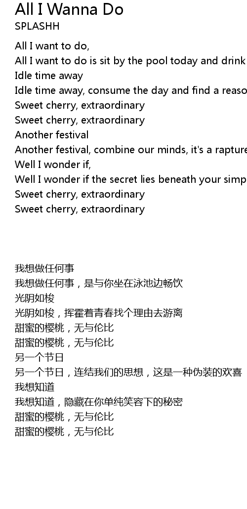 | [00:40.82] | All I want to do is sit by the pool today and drink with you |