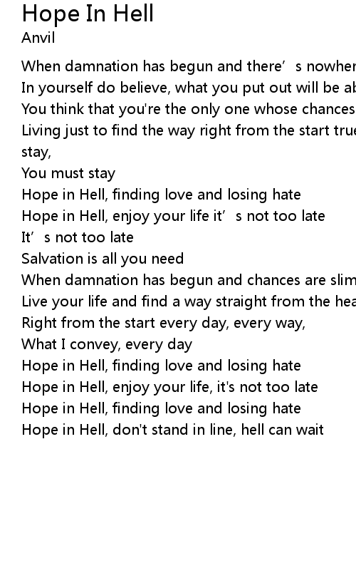 | Hope in Hell, enjoy your life, it' s not too late | |