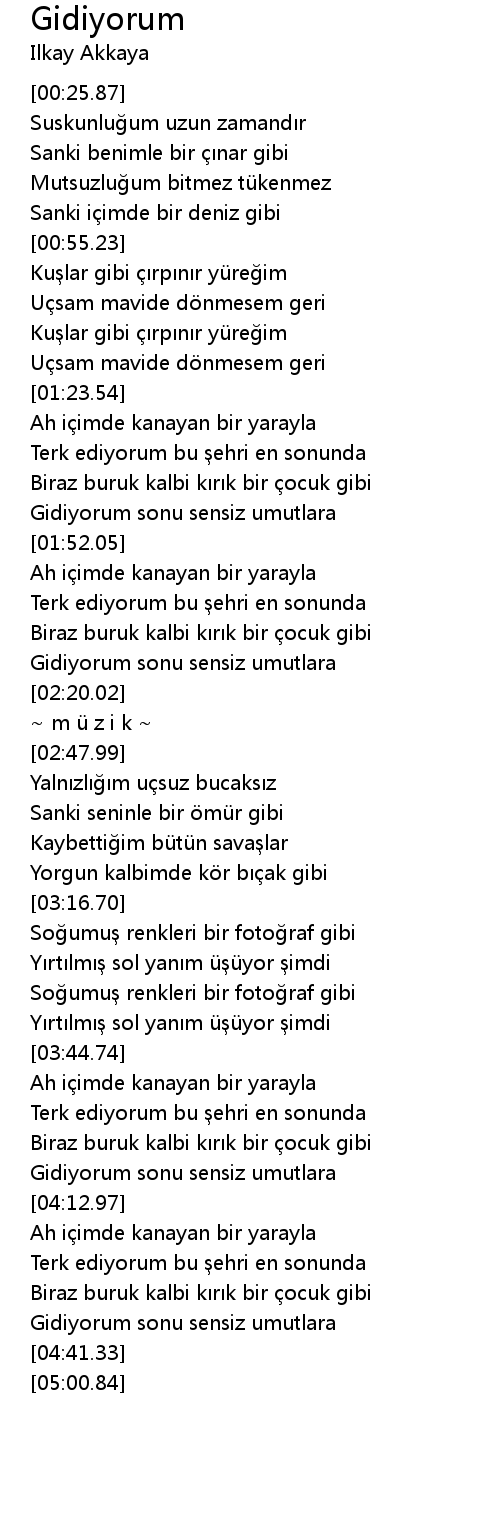 | [04:14.59] | Ah içimde kanayan bir yarayla |