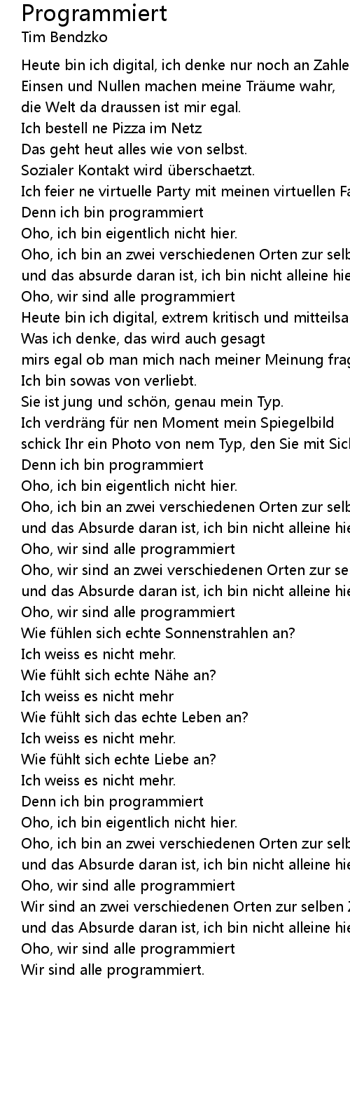 | Einsen und Nullen machen meine Tr ume wahr, | |