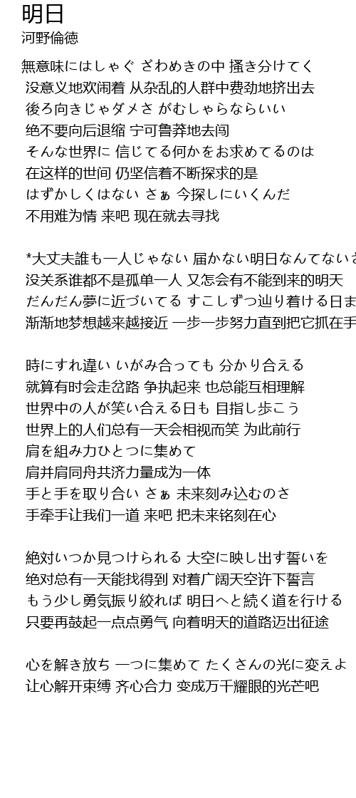 | *大丈夫誰も一人じゃない 届かない明日なんてないさ | |