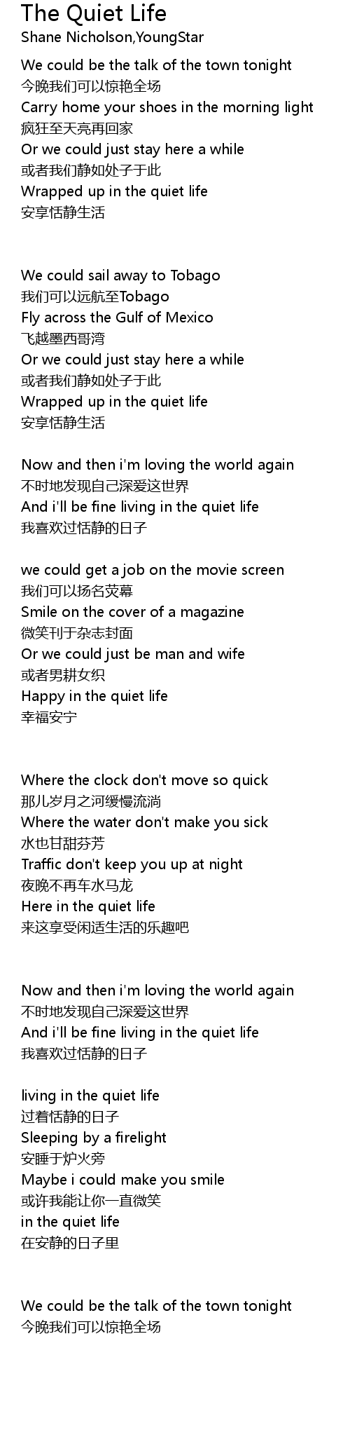 | And i' ll be fine living in the quiet life | |