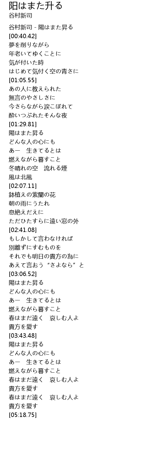 谷村新司 - 陽はまた昇る |