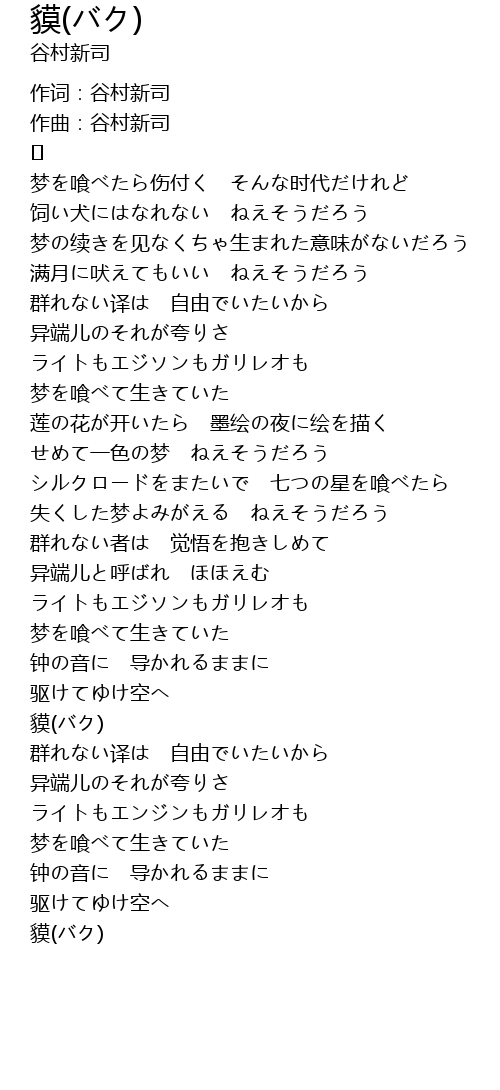 | Song | 貘(バク) |