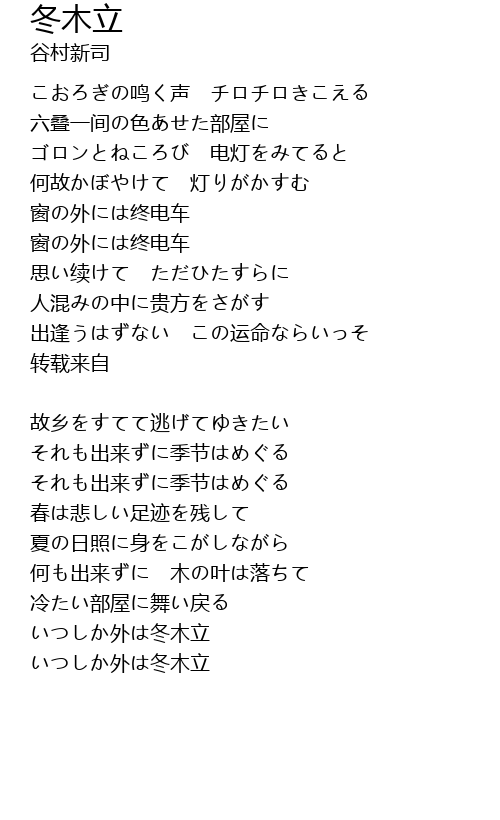 | いつしか外は冬木立 | |