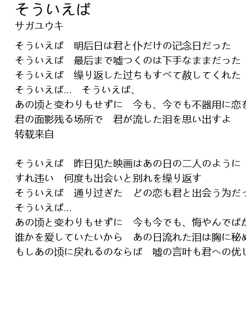 | そういえば 通り过ぎた どの恋も君と出会う为だったはずなのに | |