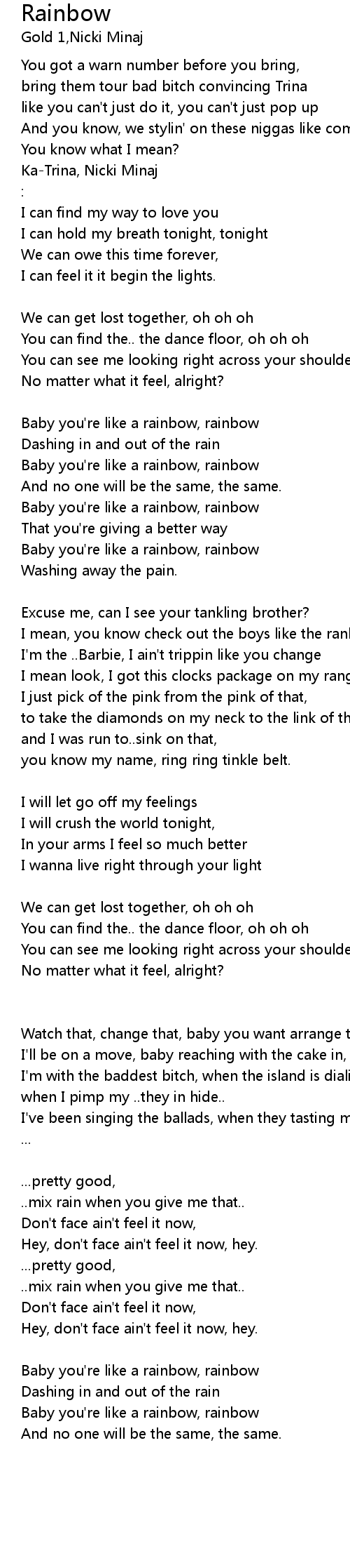 | Baby you're like a rainbow, rainbow | |