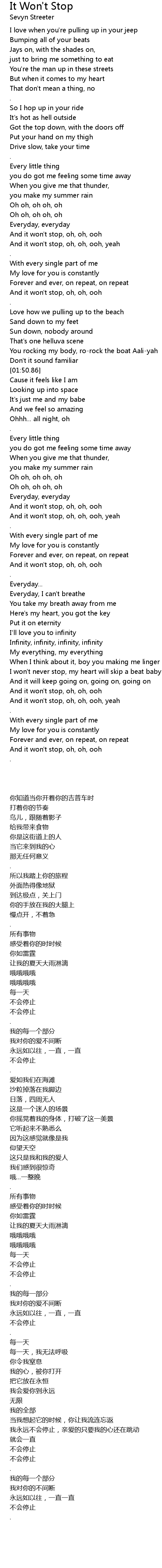 And it won't stop, oh, oh, ooh, yeah |