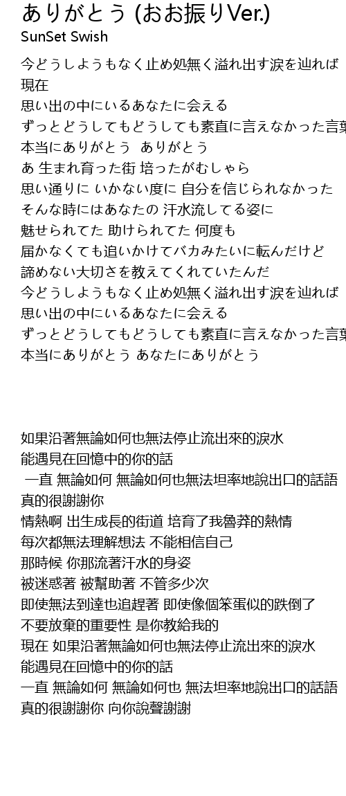 | [01:17.35] | 本当にありがとう あなたにありがとう |
