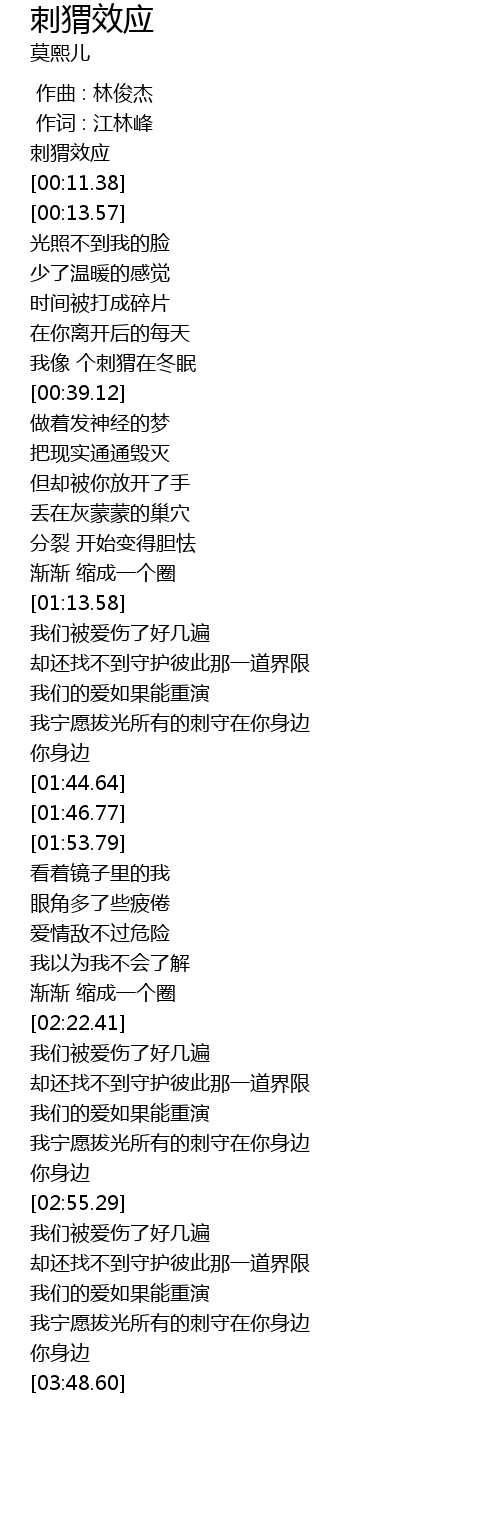 | [00:33.69] | 我像 个刺猬在冬眠 |