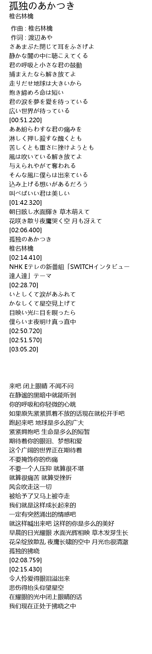| [02:07.270] | 孤独のあかつき |