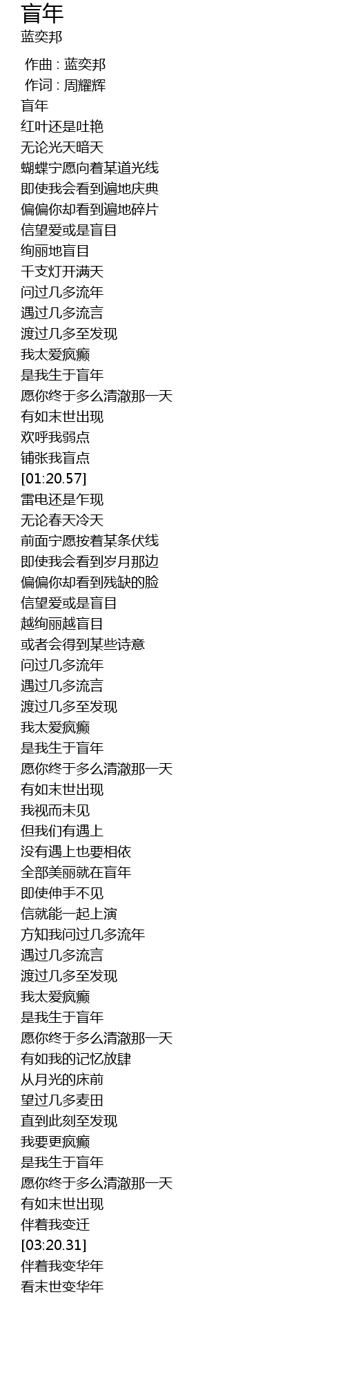 | [00:00.00] | 作曲 : 蓝奕邦 |