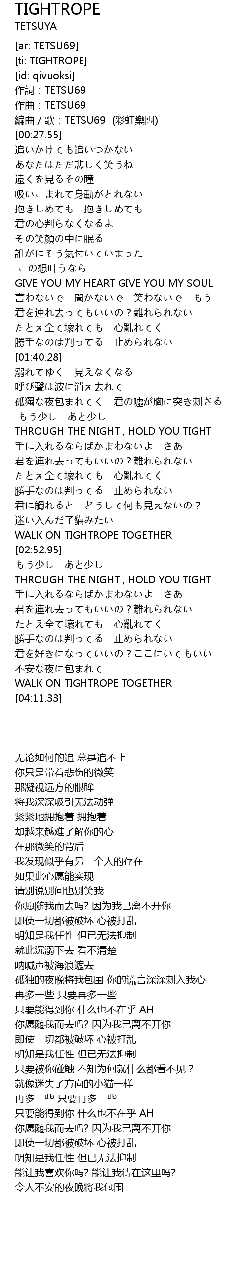 | [00:24.49] | 編曲/歌:TETSU69 (彩虹樂團) |