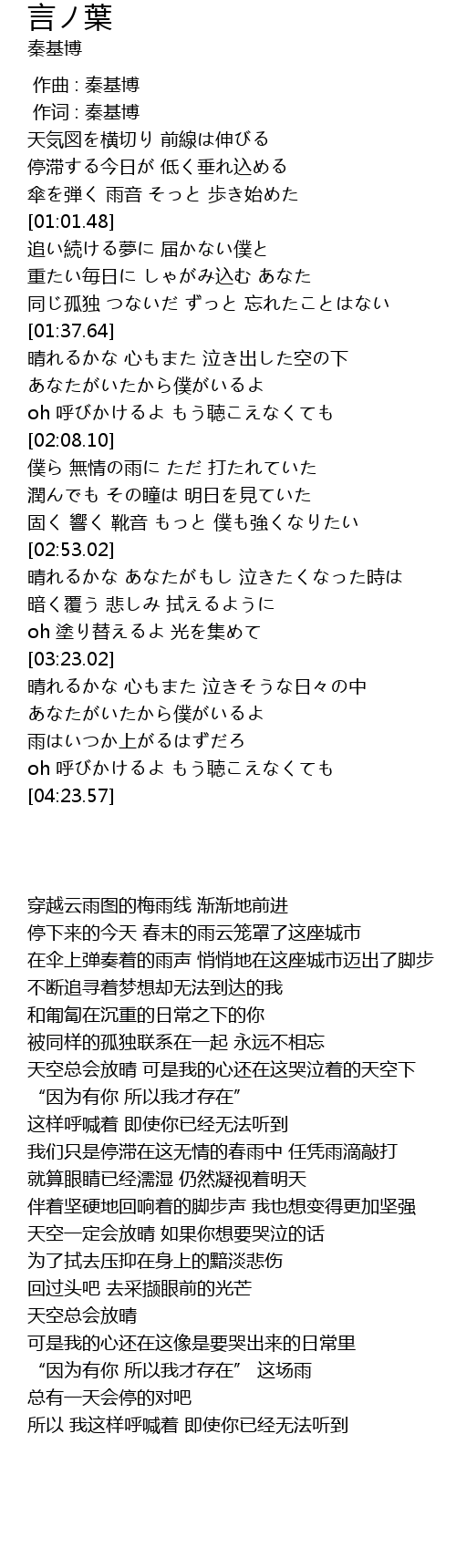 | [00:01.00] | 作词 : 秦基博 |