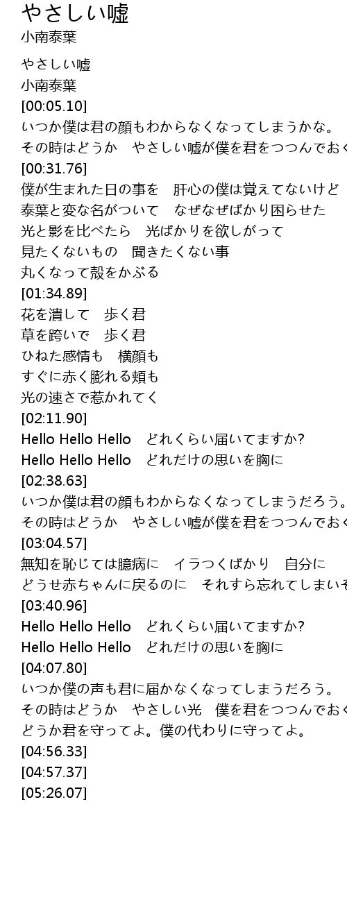 | [00:00.00] | やさしい嘘 |