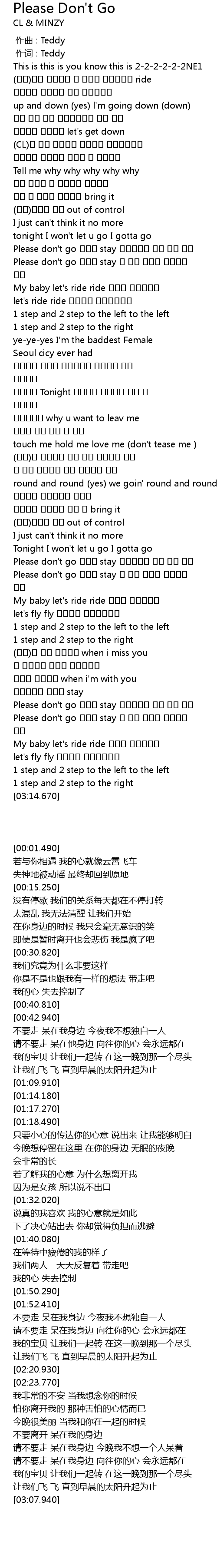 | [02:50.980] | Please don't go 그대의 stay 널 향한 내맘이 영원할수 있게 |