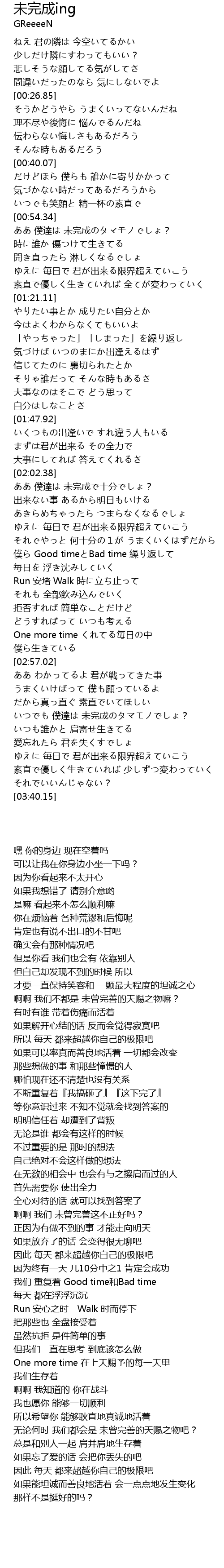 | [02:08.53] | 出来ない事 あるから明日もいける |