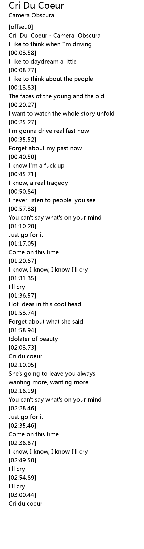 Cri Du Coeur - Camera Obscura |