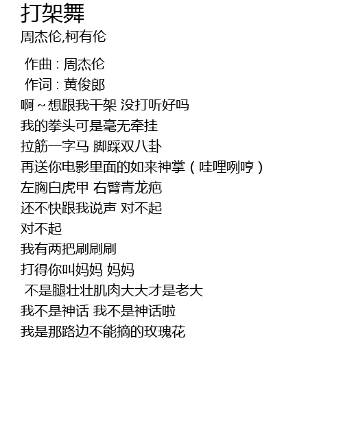 | [00:00.000] | 啊~想跟我干架 没打听好吗 |