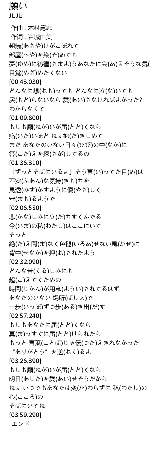 | [03:26.970] | もしも願(ねが)いが届(とど)くなら |