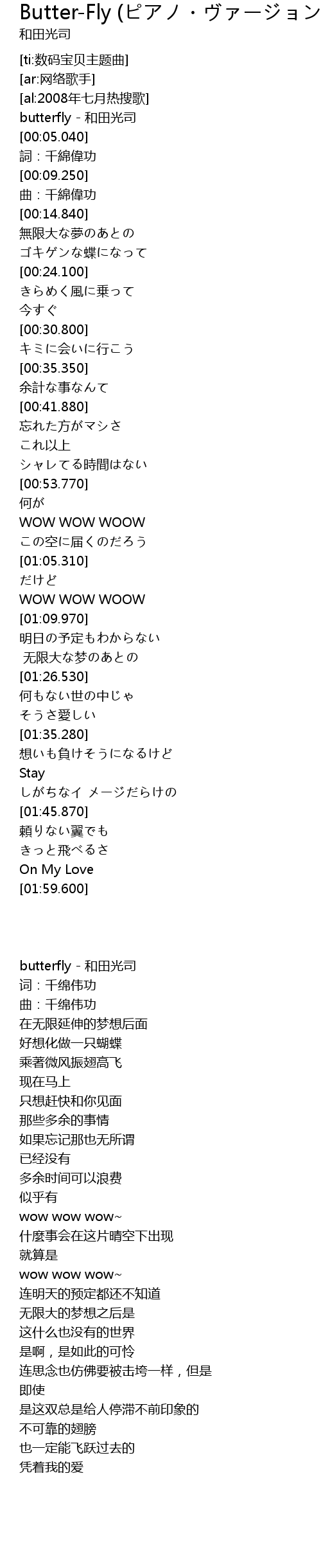 | [00:00.790] | butterfly hé tián guāng sī |
