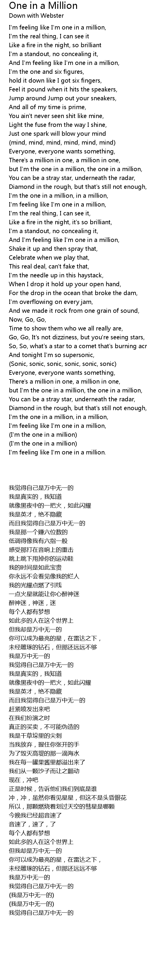 but I'm the one in a million, the one in a million, |