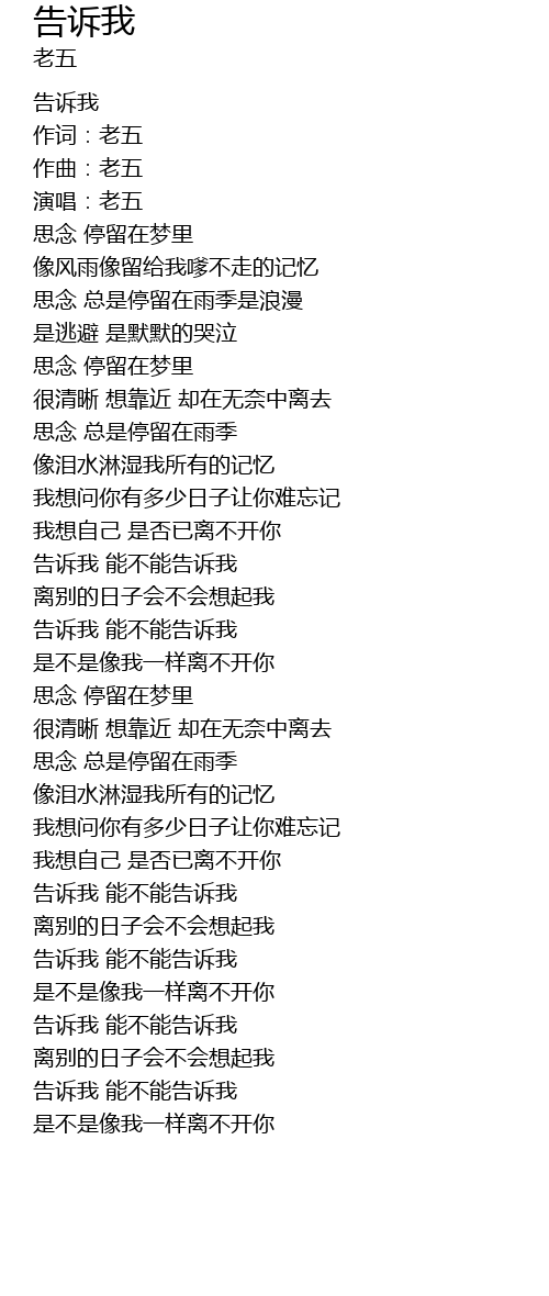 | gào sù wǒ néng bù néng gào sù wǒ | |