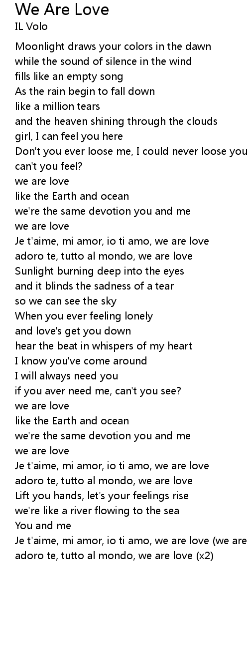 Je t'aime, mi amor, io ti amo, we are love (we are love) |