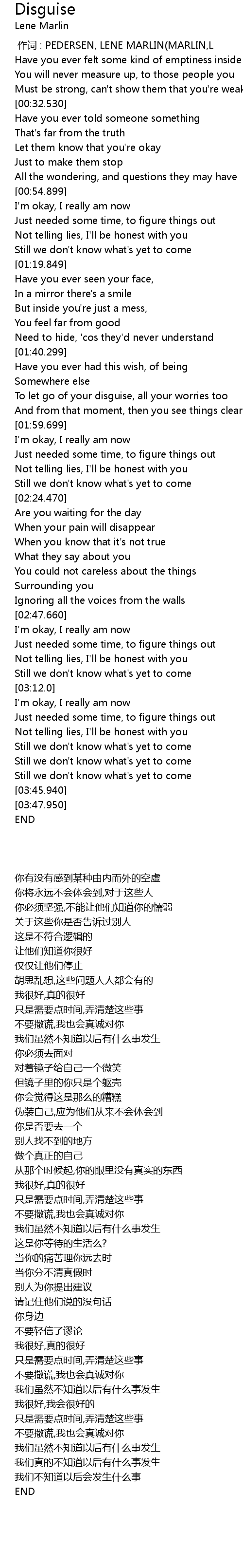 | [01:47.869] | To let go of your disguise, all your worries too |