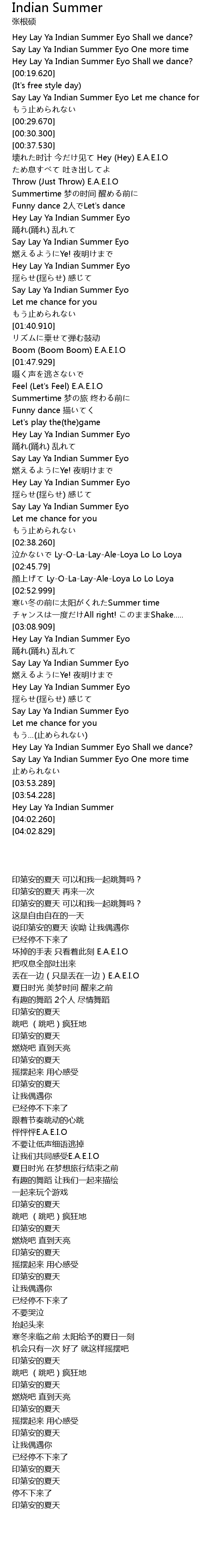 | [03:45.749] | Say Lay Ya Indian Summer Eyo One more time |