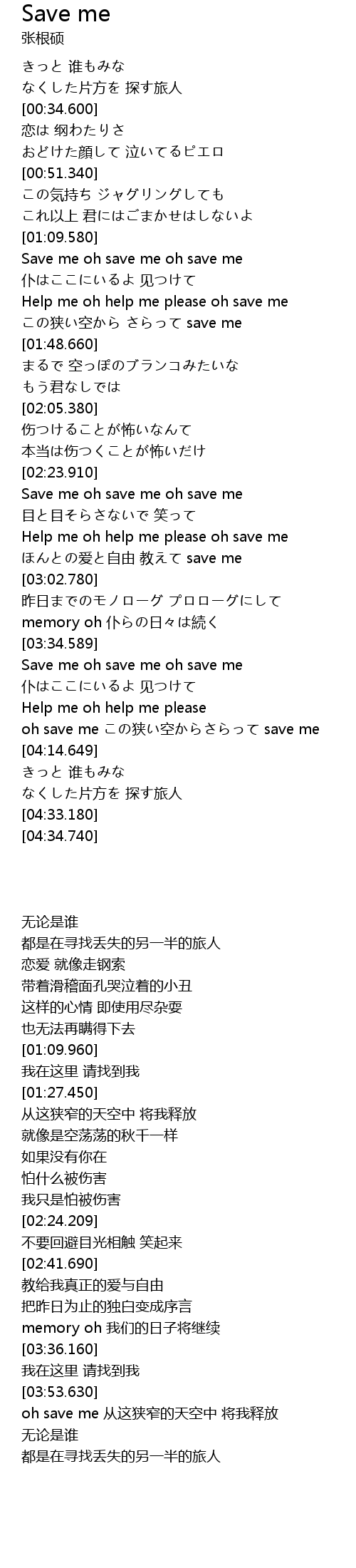 | [01:09.960] | Save me oh save me oh save me |