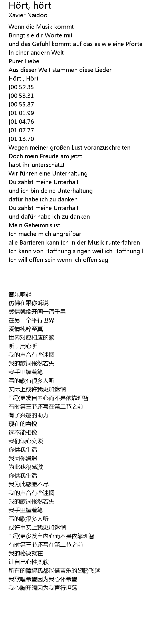 | [01:52.74][00:53.31] | Meine Worte haben viele verst rt |