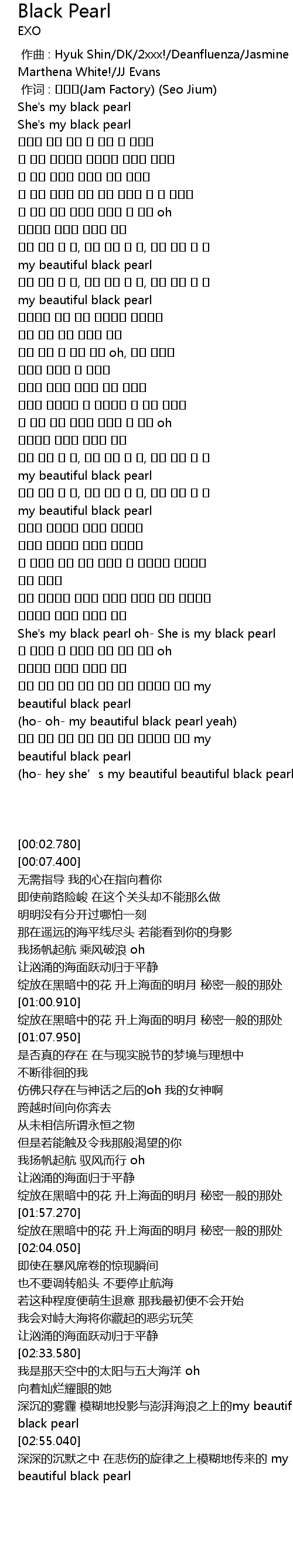 | [02:33.580] | She' s my black pearl oh She is my black pearl |