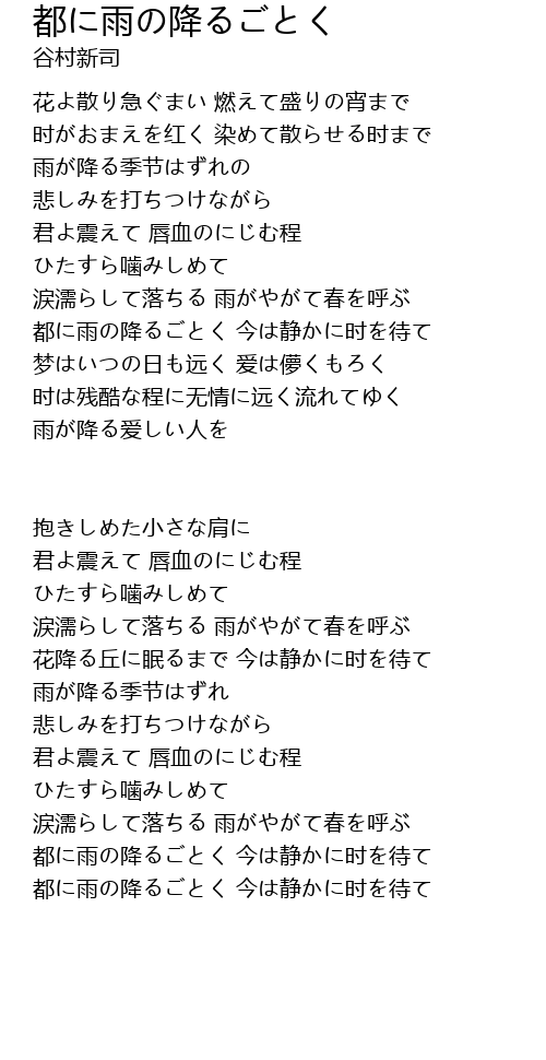 | 都に雨の降るごとく 今は静かに时を待て |