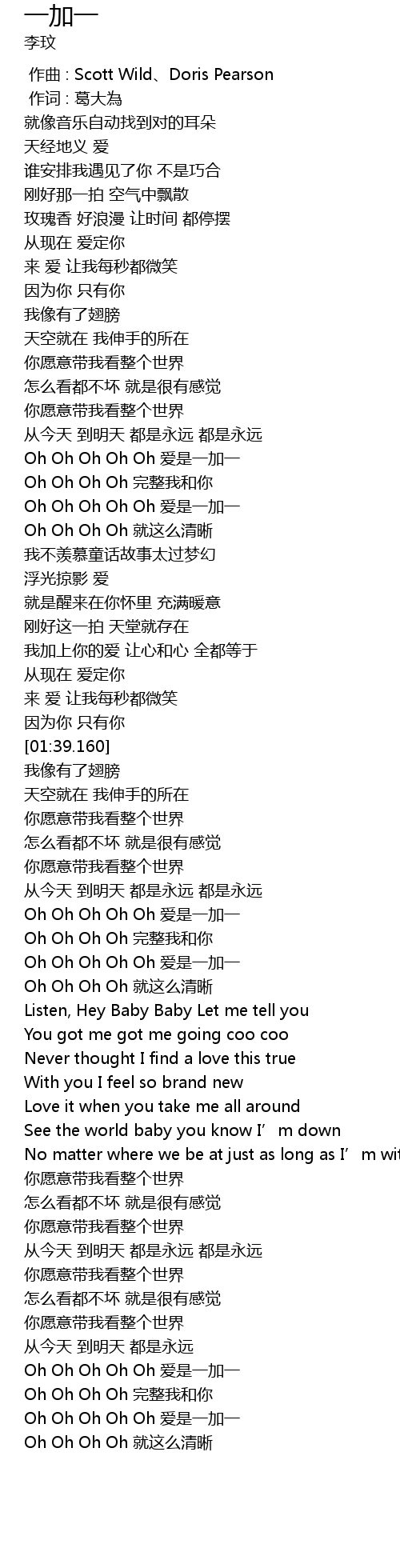 | [02:13.770] | Oh Oh Oh Oh Oh 爱是一加一 |