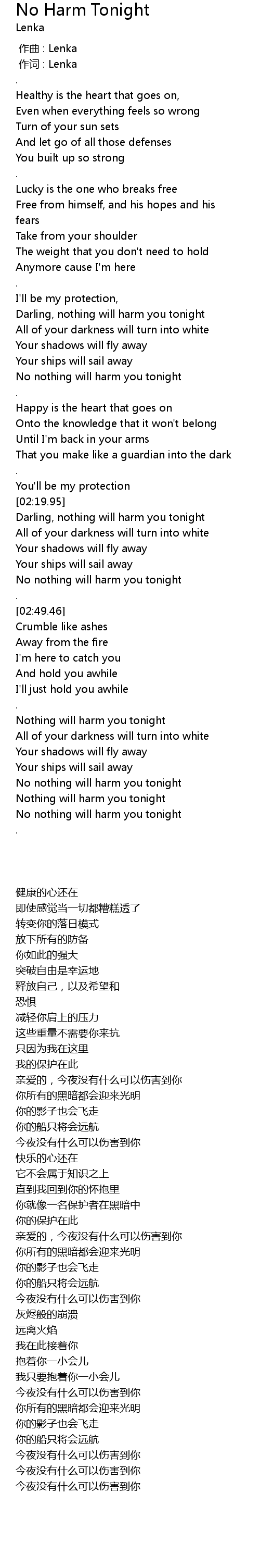 | [02:22.31] | Darling, nothing will harm you tonight |