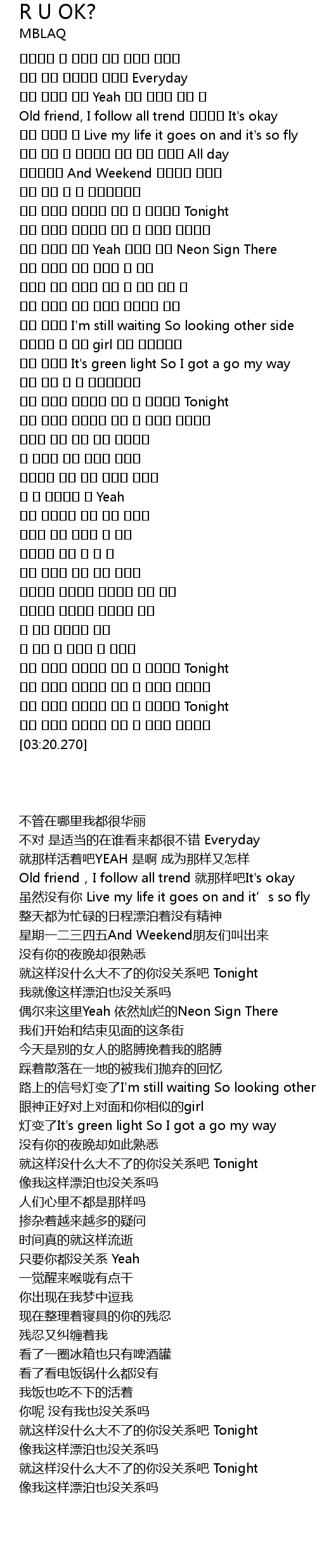 | [00:32.950] | Old friend, I follow all trend 그런대로 It's okay |