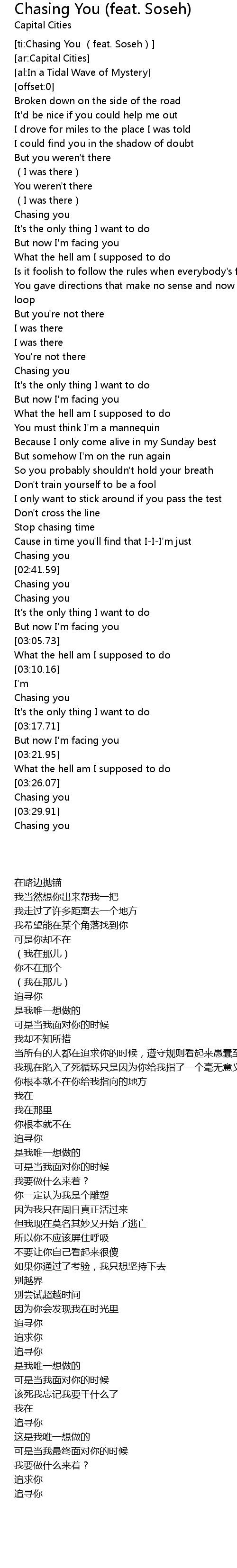 | [03:37.21] | Chasing you |