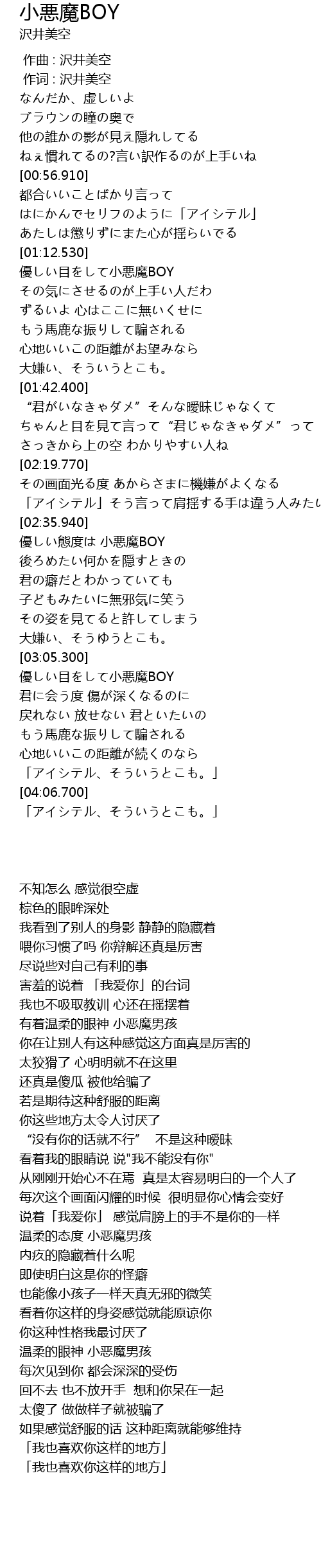 | [03:39.870] | 優しい目をして小悪魔BOY |